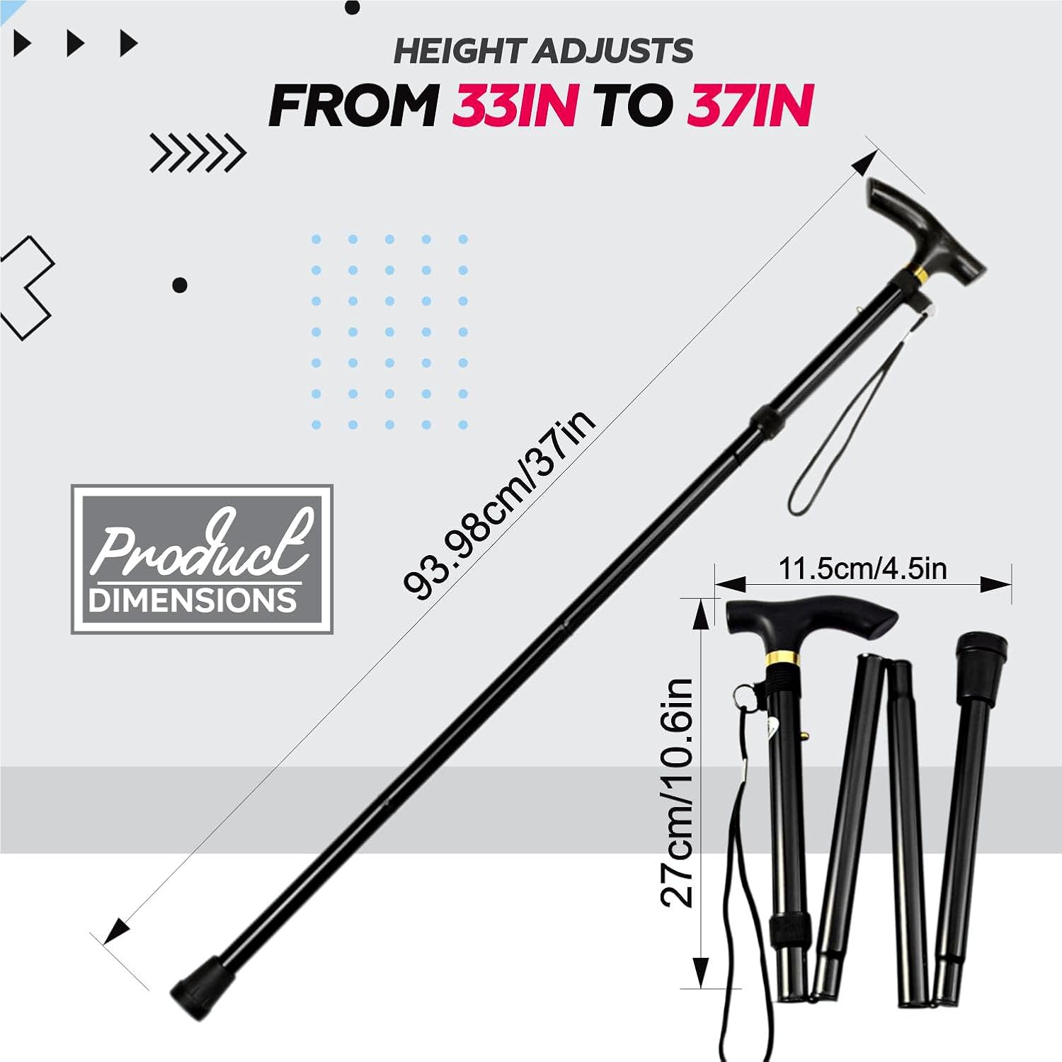 - Walking Stick Has Adjustable Design You Can Adjust Walking Stick As Your Need Folding Stick T Shaped Handle Is Contoured To Fit The Shape Of Your Palm Walking Cane Ergonomically Designed To Relieve Hand Fatigue After Prolonged Use Walking Stick Wristband Design Prevent The Cane From Falling Off