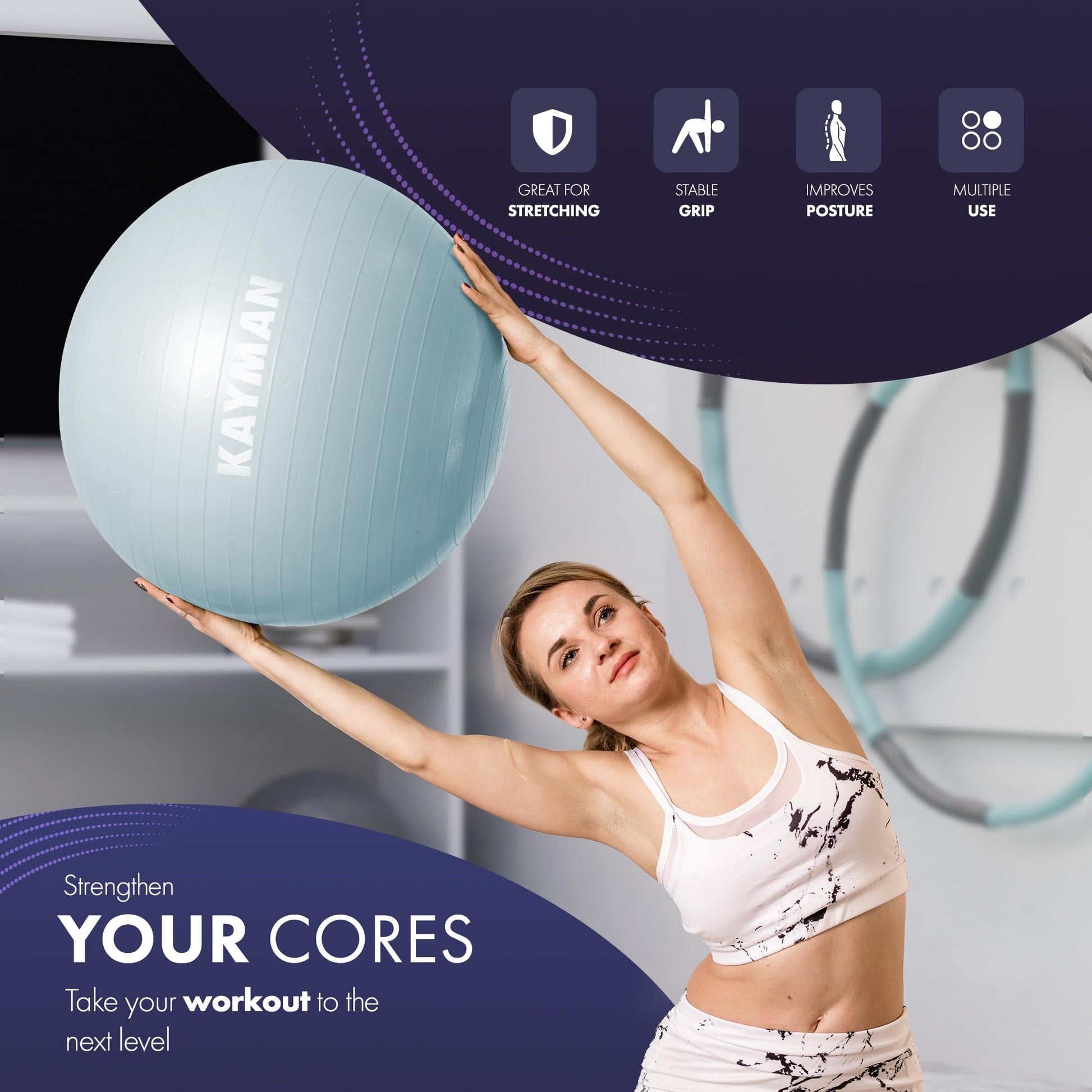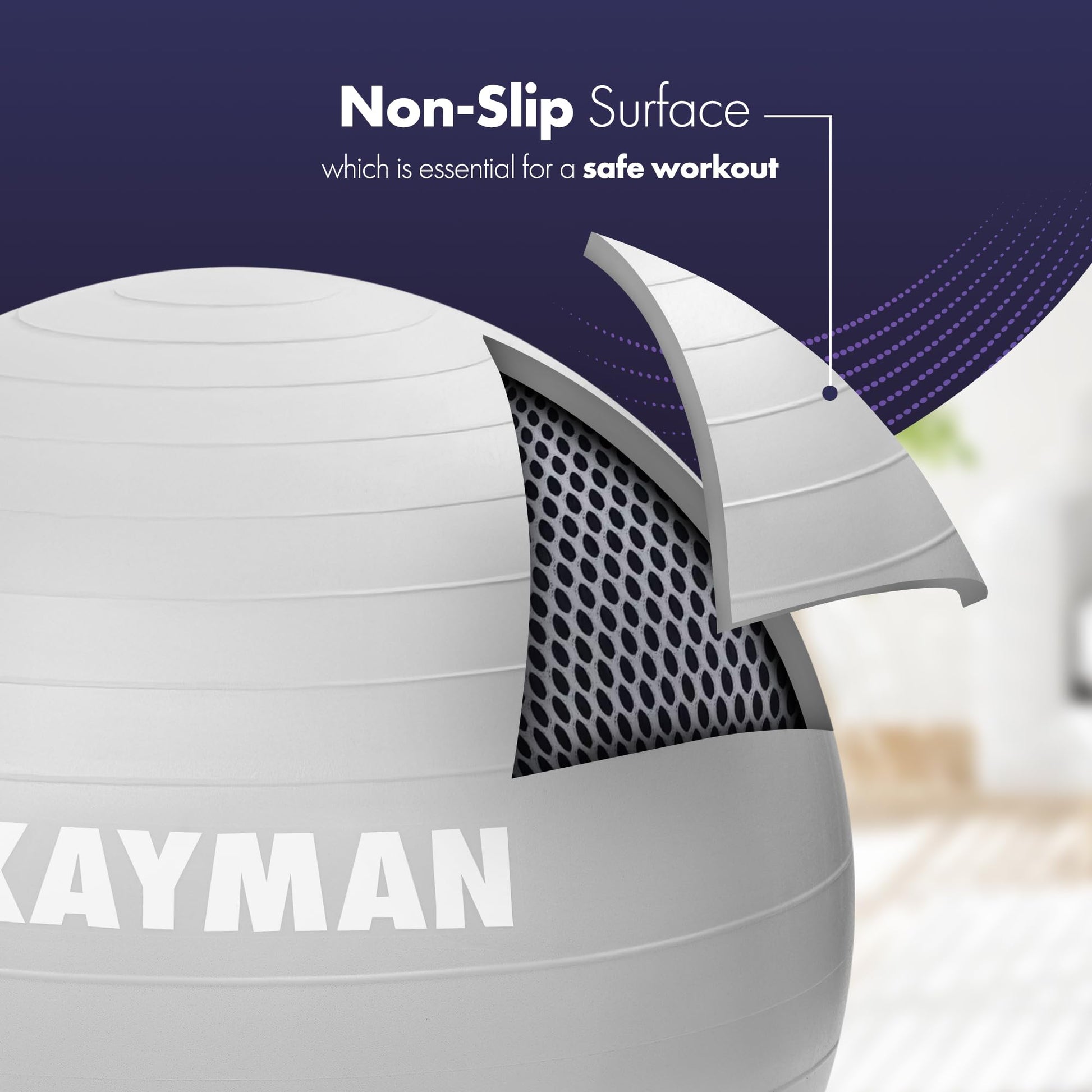 - Non-Slip Rings for Added Stability: Experience enhanced stability and grip with the innovative non-slip rings that prevent sliding on various surfaces. This design is ideal for challenging workouts, ensuring the ball stays secure during yoga poses, pilates, or intense core training.