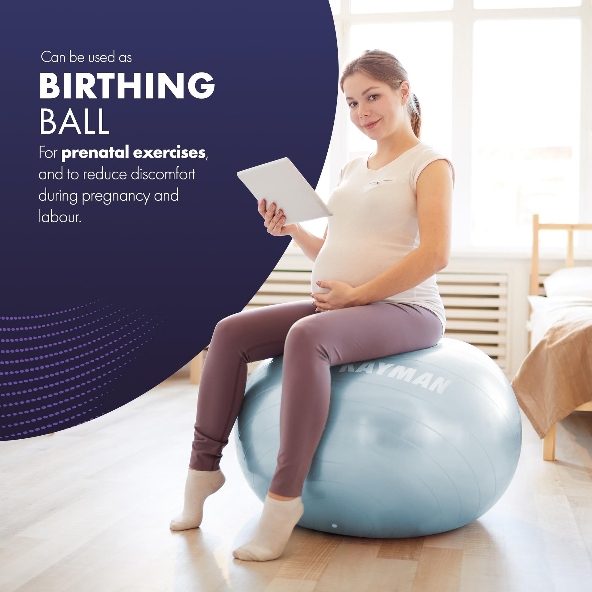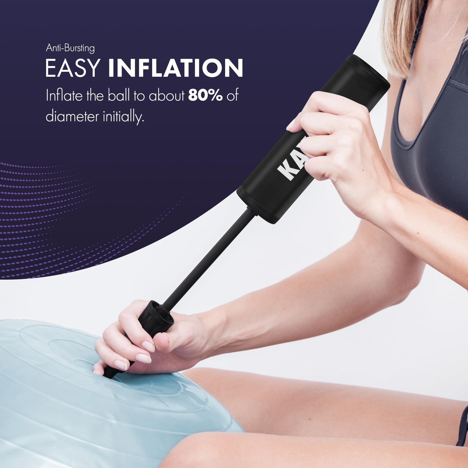 - Easy to Inflate with Compact Storage: Includes a quick-inflate pump for effortless setup, allowing you to get started right away. The ball’s 85cm size is ideal for compact storage, and its lightweight design ensures you can easily transport it for workouts anywhere.
